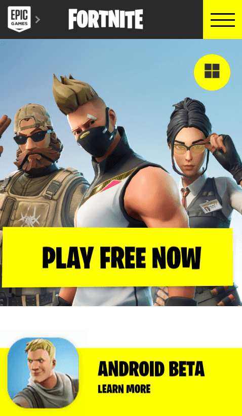 1. Langkah pertama yang harus anda lakukan ialah kunjungi situs Fortnite.com pada smartphone android yang nantinya akan anda gunakan. Pilih “Play For Free”