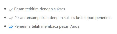 Tanda cetang satu sebagai penanda kalau pesan belum terkirim, Tanda centang dua sebagai penanda kalau pesan sudah terkirim namun belum dibaca oleh penerima, dan Tanda centang dua berwarna biru sebagai penanda kalau pesan tersebut sudah dibaca oleh penerima.