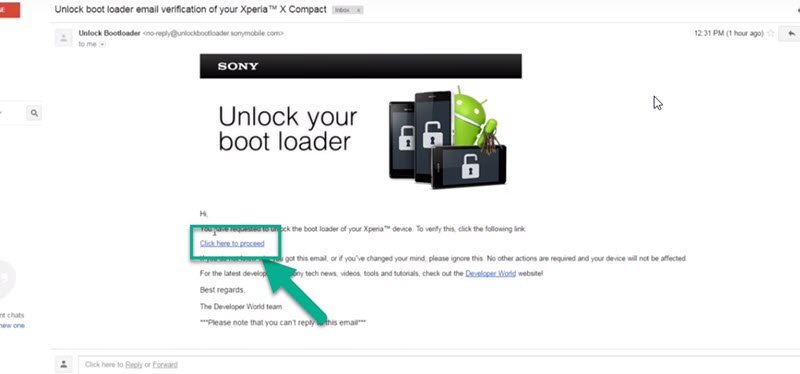 4. Periksa kotak masuk pada email anda, kemudian pilih dan klik link untuk konfirmasi permintaan Unlock Bootloader.
